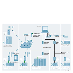 SIPLUS RIC позволяет создавать линейные топологии и топологии типа звезда. Для резервированной передачи данных станция может быть подключена к двум маршрутам передачи, например, выделенной линии в комбинации с DSL или GPRS.