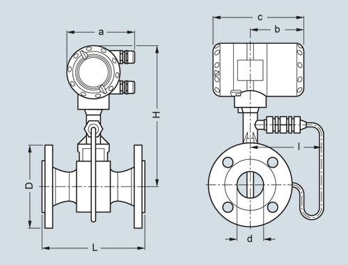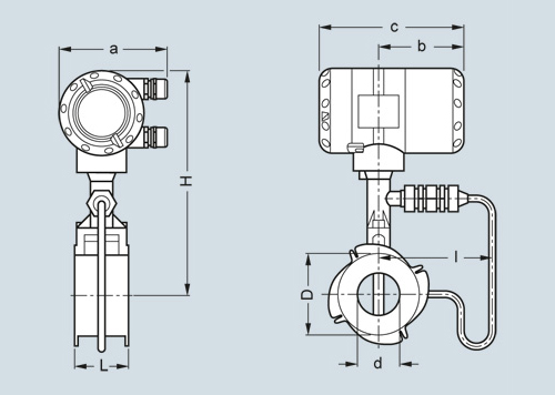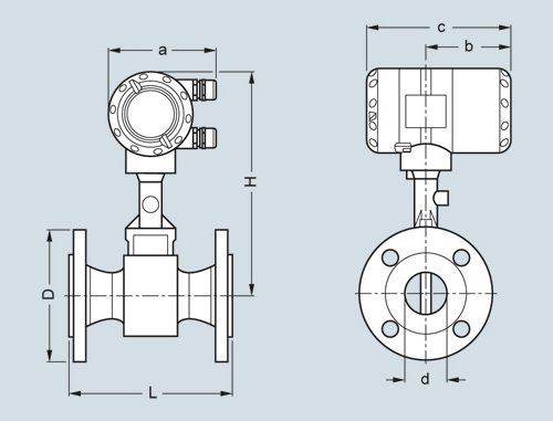 Одиночный преобразователь выпускается в фланцевой или сэндвич-версии как объемный расходомер (стандартно) и как массовый расходомер (опционально):