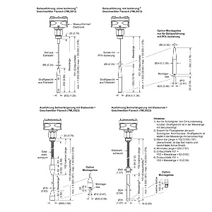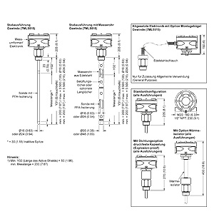 1) Фланец из нерж. стали AISI-316L/1.4404 с сварной платой Hastelloy, 5 мм2) В зависимости от диапазона температур3) В зависимости от ступени давления+ до 400 °C (752 °F) с изоляцией зондов из Email