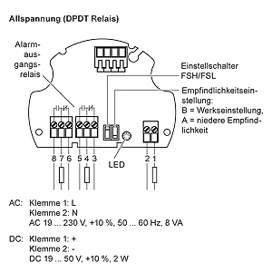 Сигнал электронной цепи воздействует на кристалл зонда, что заставляет вилку вибрировать. Если вилка покрыта материалом, то изменение частоты вибрации определеяетчя в электронной цепи, что приводит к тому, что состояние реле изменяется после секундной задержки. Если давление материала на вилку отсутствует, то вибрация прекращается и реле переходит в нормальное состояние.