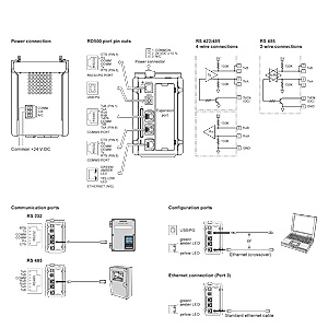 | RS422/485 порт через RJ45 и RS232 порт через RJ12 |