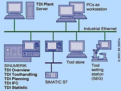 С помощью TDIPlant имеется возможность использования установленных на отдельных станках функций TDI в сети. С помощью TDI Plant возможно промышленное объединение в сеть СЧПУ и других специфических для инструмента компонентов установки. Через TDIPlant более чем 16 станков с ЧПУ может быть объединено в информационную структуру. TDIPlant работает на системе управления верхнего уровня под WindowsXP/Windows 2003 Server, и является многопользовательским. |