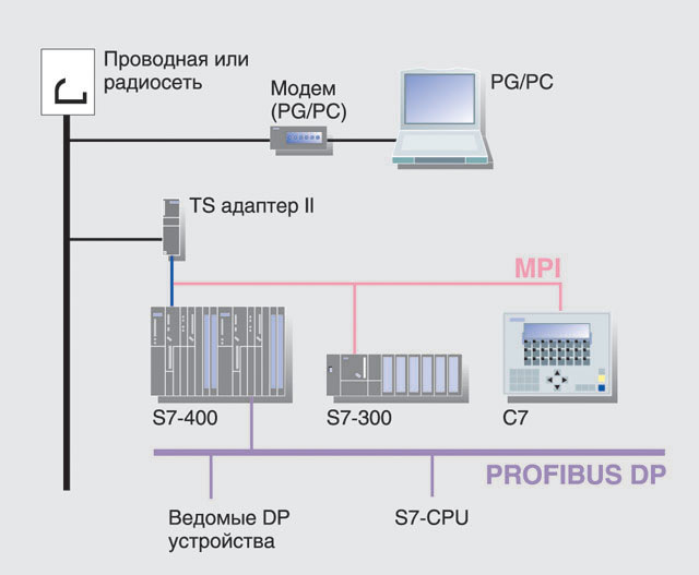 Кроме того, совместное использование пакетов TeleService и PRODAVE MPI, позволяет организовать программно управляемую связь между программатором/ компьютером и центральными процессорами систем автоматизации. Инициатором обмена данными в такой системе может выступать не только программатор/ компьютер, но и центральный процессор программируемого контроллера.