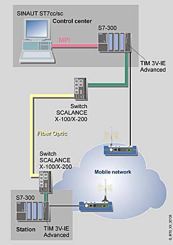 - Через любые SINAUT WAN со станциями SINAUT ST7 и SINAUT ST1