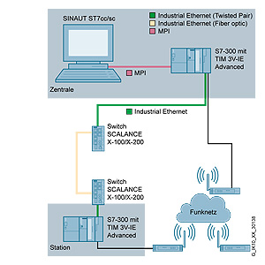 Один модуль TIM 3V-IE Advanced позволяет поддерживать обмен данными через любые виды SINAUT WAN между одной или несколькими системами автоматизации SIMATIC S7-300/ S7-400/ C7, а также компьютерными центрами управления (SINAUT ST7cc или SINAUT ST7sc) с одной стороны и станциями SINAUT ST7 или SINAUT ST1 с другой. Дополнительно этот модуль способен поддерживать SINAUT связь через Ethernet на основе TCP/IP по аналогии с ситемами связи на основе выделенных линий. Наиболее важные свойства модулей SINAUT, например, сохранение данных с их отметками даты и времени при отказе каналов связи или партнера по связи, сохраняются и в сети Ethernet. За счет этого исключается возможность потери данных и обеспечивается их гарантированная доставка в систему архивирования центра управления.