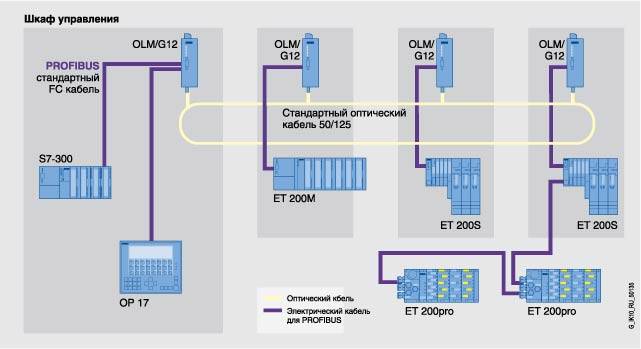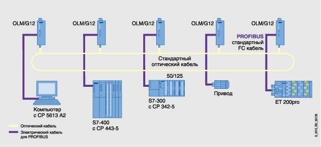 Универсальные оптические сети PROFIBUS: - Магистральная, кольцевая или звездообразная топология, базирующаяся на применении оптических модулей связи OLM.