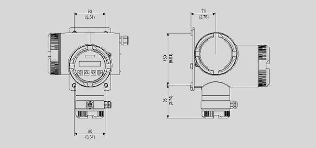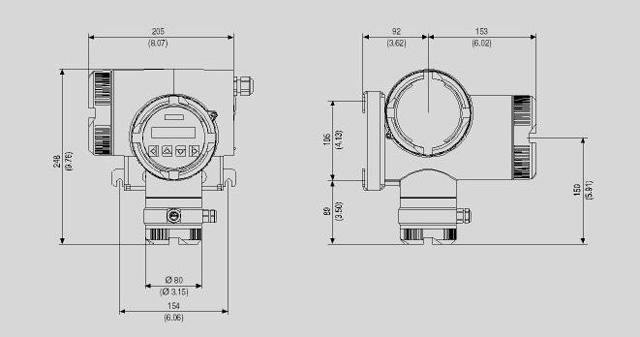 SITRANS F M Измерительный датчик 911/E, компактная конструкция, размеры в мм (дюймах)