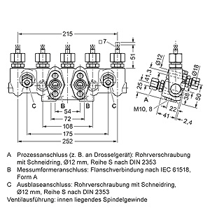 Оба вентильный блока имеют 2 фланцевых соединения для подключения измерительного преобразователя давления.