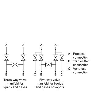 3-х и 5-ти ходовые вентильные блоки DN 5 используются для блокировки импульсных линий и для проверки нулевой точки измерительного преобразователя давления.
