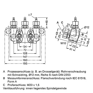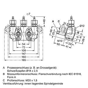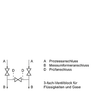 3-х ходовой вентильный блок DN 8 предназначен для измерительных преобразователей дифф. давления. Он используются для блокировки импульсных линий и для проверки нулевой точки измерительного преобразователя давления.