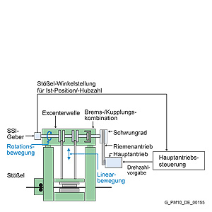 В прессах штамповочных автоматах высокие требования предъявляются к времени обработки критичных функций (кулачковые переключатели, контроль процесса, и т.д.). Универсальные прессы с частотами ходов до 100, максимум 200 ходов в минуту являются в большинстве случаев простыми прессами с малой степенью автоматизации. При частотах ходов от 200 до 500 ходов в минуту, у штамповочных автоматов со скоростью до 2000 ходов в минуту сложность системы управления и требования ко времени реакции и степени автоматизации значительно возрастают.