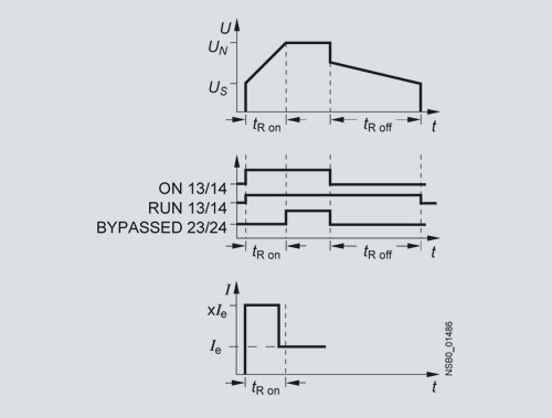Полупроводниковые устройства плавного пуска SIRIUS 3RW40 подходят для плавного пуска/остановки 3-фазных асинхронных двигателей. Благодаря 2-фазному управлению, ток поддерживается на минимальных величинах во всех 3 фазах в течение всего процесса пуска. Кроме того, исключаются являющиеся нежелательными составляющие постоянного тока. В итоге, можно не только осуществить 2-фазный пуск двигателя до 250 кВт (при 400 В), но и избежать бросков тока и вращающего момента, которые возникают при использовании устройств пуска «звезда-треугольник».