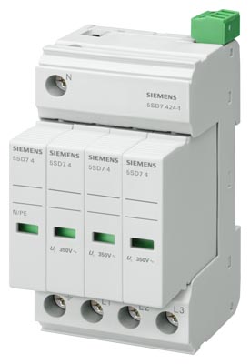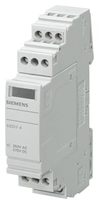 | | 5SD7 разрядник, тип 3 | с втычными защитными модулями для одно- и трех-фазных сетей. Ном.напряжение, одно-фазное 24 V AC/DC, 60 V, 120 V, 230 V и трех-фазное 230/400 V AC. Для установки в распределительные шкафы.