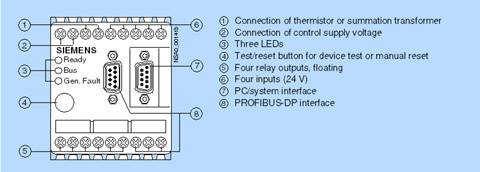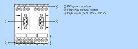Все исполнения основного модуля имеют четыре оптически развязанных входа, которые запитаны внутрисистемным напряжением 24 V DC. Эти входы свободно параметрируются, т.е. на них можно подать любой цифровой сигнал для управления / мониторинга фидерной сборкой. Также есть четыре релейных, свободно параметрируемых выхода, с помощью которых можно управлять любыми исполнительными устройствами (например, контактором двигателя). На основном модуле есть два коммуникационных интерфейса: интерфейс сетевой шины PROFIBUS DP и системный интерфейс RS232. Кабель PROFIBUS DP может быть подключен или через стандартный Sub-D разъем, или через клеммные зажимы (оптимальное решение при установке в выкатном модуле низковольтного распределительного щита). Системный интерфейс RS232 можно использовать или для подключения дополнительных компонентов системы, таких как