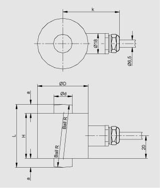 Чертеж | Номинальная нагрузка | а | Ød | ØD | H | k | L | R | | 2,8 т, 6 т | 8 | 16,7 | 45 | 40 | 54 | 56 | 50 | | 13 т | 12 | 24,5 | 55 | 44 | 59 | 68 | 66 | | 28 т | 14 | 36 | 64 | 46 | 63,5 | 74 | 72 | | 60 кг | 20 | 52,7 | 90 | 50 | 76,5 | 90 | 100 | | 130 т | 26 | 77,5 | 121 | 64 | 92 | 116 | 125 | | 280 т | 45 | 114 | 165 | 80 | 114 | 170 | 183 | Весоизмерительная ячейка SIWAREX R, серия К, размеры |