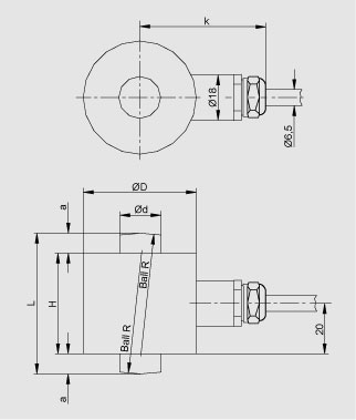 | Номинальная нагрузка | а | Ød | ØD | H | k | L | R |