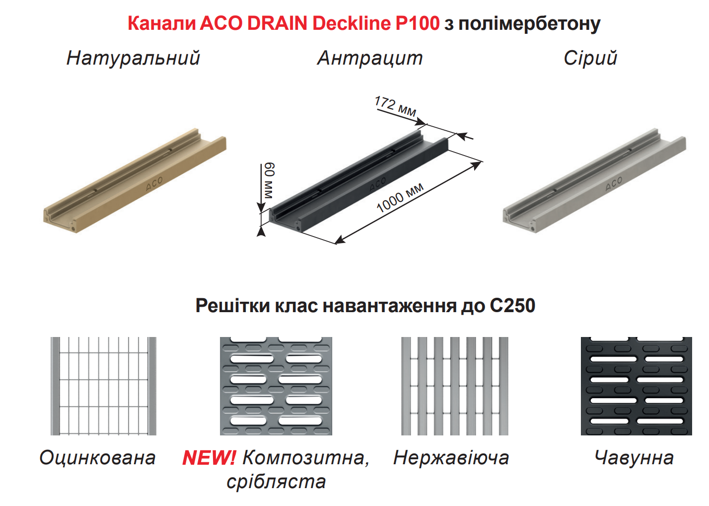 ■ Канал имеет специальную кромку из полимербетона, которая выдерживает нагрузку до С250.