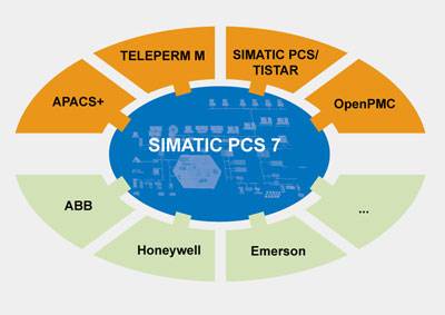 ФункцииСпектр продуктов для модернизацииSiemens имеет богатый практический опыт в области модернизации существующих систем управления. Этот опыт используется при разработке новых изделий и технологий, обладающих более высокой эффективностью. Основной технологией для для текущих и новых продуктов модернизации является база данных "Data Base Automation" (DBA), интегрированная в систему проектирования SIMATIC PCS 7. Использование DBA и встроенного интерфейса позволяет загружать параметры конфигурации любой системы управления производственным процессом, отображать и конфигурировать эти данные с использованием стандартного интерфейса DBA. Продукты для модернизации, базирующиеся на технологии DBA, могут быть разделены на следующие категории:
