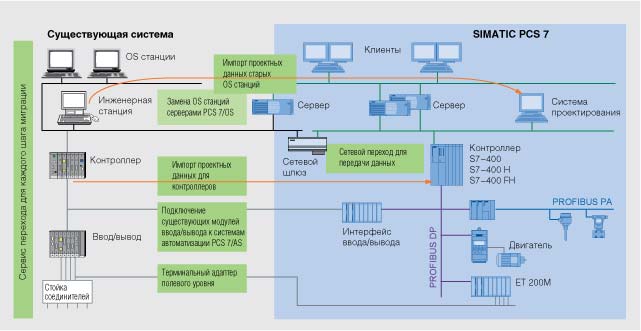 Переход от существующих систем к SIMATIC PCS 7 может происходить по множеству сценариев, опрежедяемых конкретными экономическими и технологическими факторами. Продукты модернизации, базируещиеся на использовании технологии DBA, обеспечивают модульность и гибкость реализации различных вариантов этих сценариев: