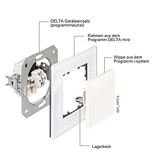 Комментарий: В этой главе представлены рамки программы DELTA miro. В качестве электрических частей и лицевых накладок могут применяться все компоненты программы DELTA i-system.