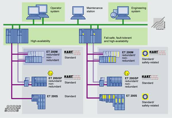 Единая система проектирования для стандартных систем автоматизации непрерывных процессов и систем противоаварийной защиты Перерабатывающая промышленность характеризуется использованием комплексных технологических последовательностей с высокими требованиями к надежности функционирования систем автоматизации, а также обеспечения безопасности их функционирования для обслуживающего персонала, машин, предприятий и окружающей среды. Системы безопасности должны надежно выявлять ошибки протекания технологического процесса и в своей собственной работе и, при появлении таких ошибок, переводить часть или все технологическое оборудование в безопасные состояния. Системы безопасности, объединенные со стандартными системами автоматизации непрерывных процессов, строятся на базе широкого спектра продуктов производства Siemens. Этот спектр продуктов объединяет в своем составе: