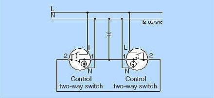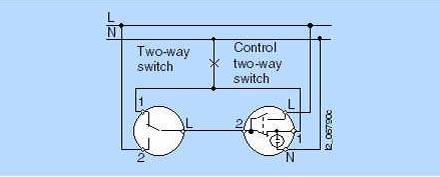 Схема подключенияПодключение универсального и контрольного выключателя для схемы отключения света из двух точекЗаказной номер электрической части: