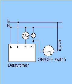Схема подключенияФункция выключателя с выдержкой времениВключение освещения и вентилятора производится одновременно. После отключения освещения, вентилятор продолжает еще работать установленное на выключателе время, по истечении которого автоматически выключается.