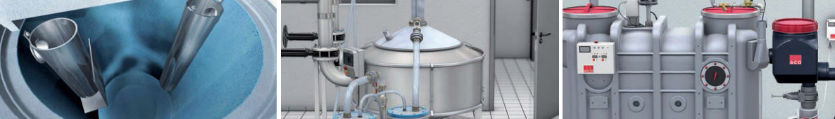 Жироотделители АСО для установки в помещениях разработаны и производятся в соответствии с нормативом EN 1435. Данные жироотделители предназначены для установки в помещениях, т.к. их конструкция предусматривает возможность откачки жироотделителя с улицы, без въезда утилизационной машины внутрь здания, или в сменные бочки. Предусмотрено также: разрыв струи, вентиляция корпуса для предотвращения появления неприятного запаха, возможность внутренней промывки жироотделителя без открывания крышек инспекционных люков, возможность контроля уровня жира и диспетчеризация отделителей.