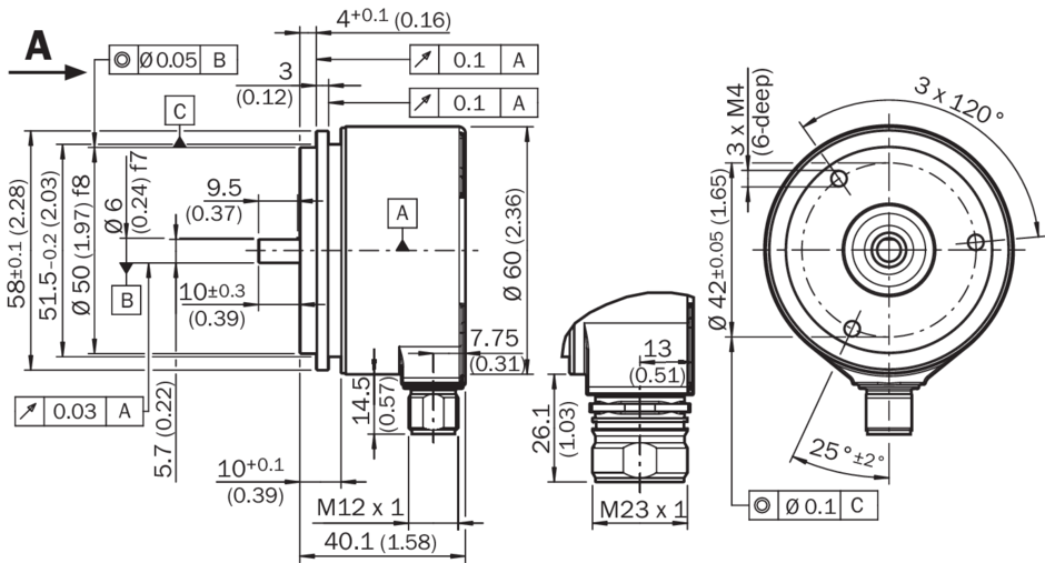 Габаритный чертеж Сервофланец, радиальное штекерное соединение M12 и M23