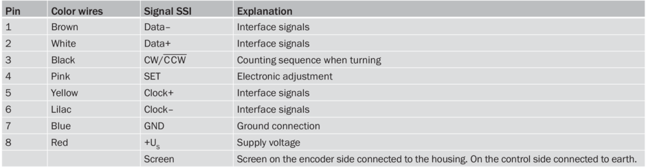 | SSI | | Тип кода | Gray | | Не программируемый | | Параметрируемая кодовая характеристика | CW/CCW параметрируется | | Тактовая частота | ≤ 1 MHz 2) | | Set (электронная настройка) | H-активный (L = 0 - 3 V, H = 4,0 - Us V) | | V/R (последовательность шагов в направлении вращения) | L-активный (L = 0 - 1,5 V, H = 2,0 - Us V) |