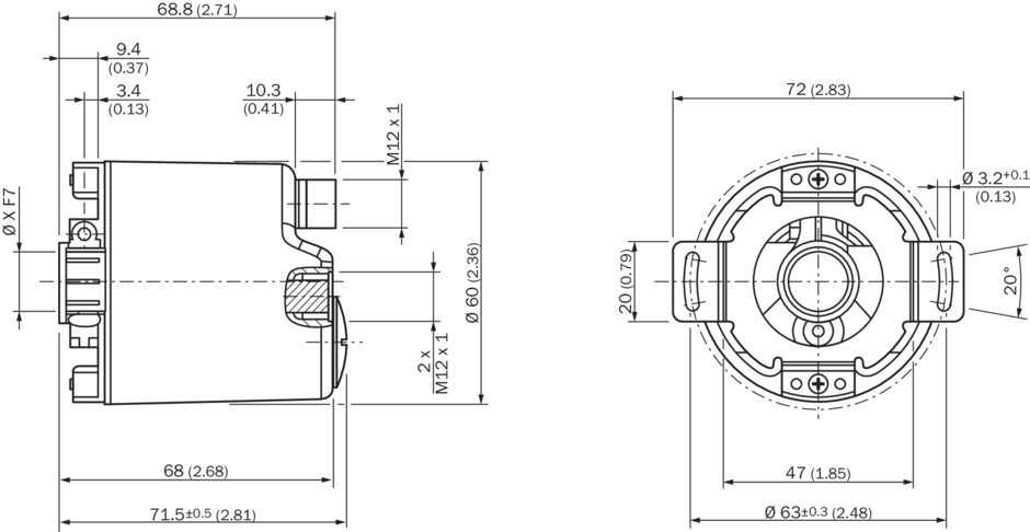 Габаритный чертеж Диаметр x f7 соответствует диаметру вала