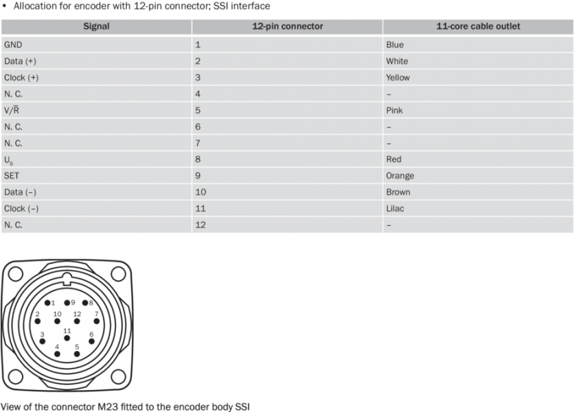 | SSI | | Параметрируемая кодовая характеристика | CW (по часовой стрелке), С возрастанием, при вращении вала. По часовой стрелке, если смотреть в направлении A (см. размерный чертеж). если смотреть на вал, который вращается по часовой стрелке |