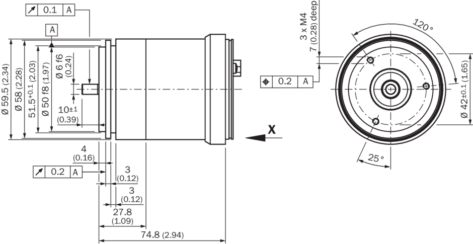 1) Согласно DIN ISO 1319-1, верхний и нижний допуск зависят от условий монтажа, указанное значение приводится для симметричного расположения, то есть отклонения в верхнем и нижнем направлении одинаковы.