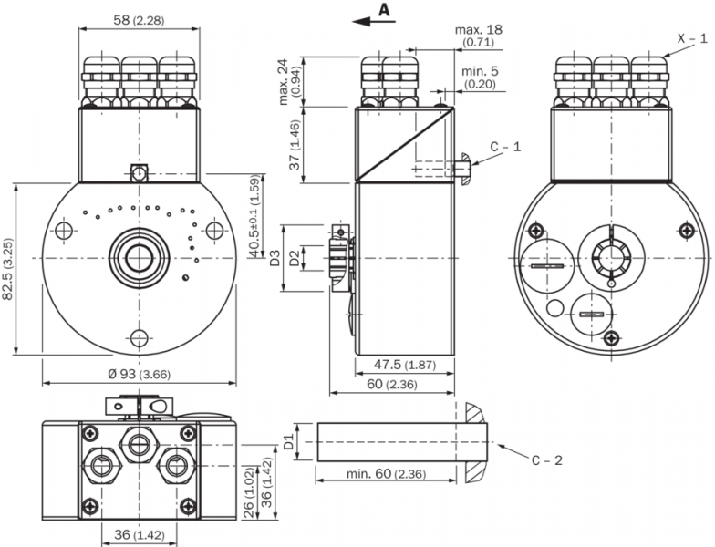 1) Согласно DIN ISO 1319-1, верхний и нижний допуск зависят от условий монтажа, указанное значение приводится для симметричного расположения, то есть отклонения в верхнем и нижнем направлении одинаковы.