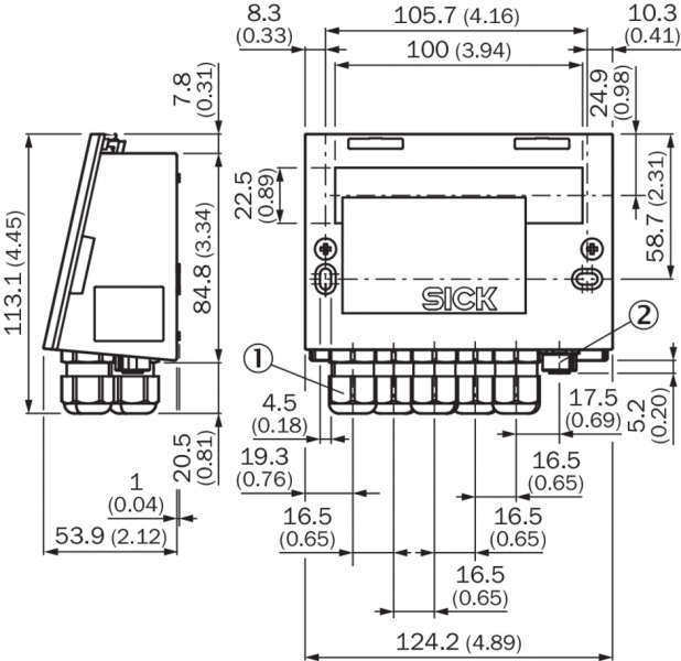 Краткое описаниеБазовый соединительный модуль для подключения датчика: предохранитель 2 A, 5 кабельных вводов и интерфейс RS-232 для датчика через M12, 17-конт. гнездовой разъем, все выходы выведены на клемму.