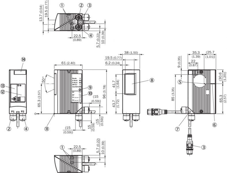 2-Port Ethernet согласно IEEE 802.3 (скорость передачи данных 100 Мбит/с, полнодуплексная связь, двухпортовый коммутатор, автосогласование, автоопределение перекрещивания пар). Максимальная длина массива данных ограничивается режимом связи (протоколом фрагментации) на уровне 4000 байт.
