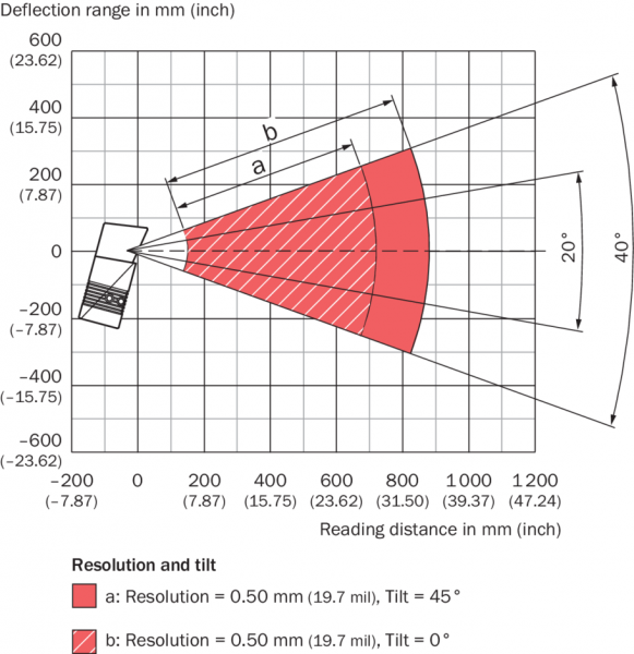 | Расстояние считывания | 155 mm ... 880 mm 1) |