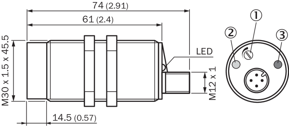 Габаритный чертеж CM30, не вровень с плоскостью, штекер
