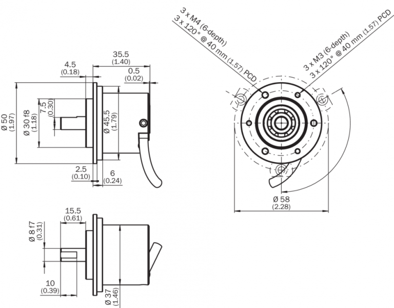 | Допустимая нагрузка на вал, радиальная/осевая | 30 N (осевая) 50 N (радиальная) |