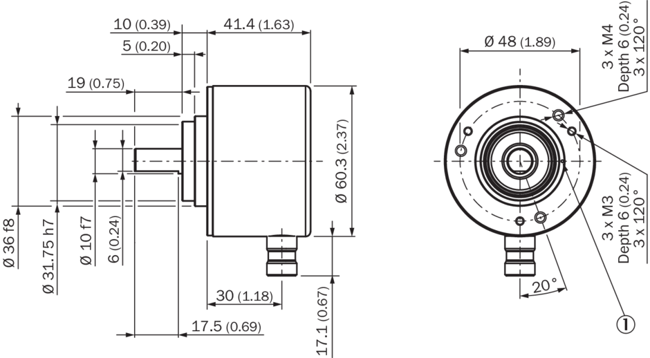Габаритный чертеж Сплошной вал, зажимной фланец, штекерный разъем