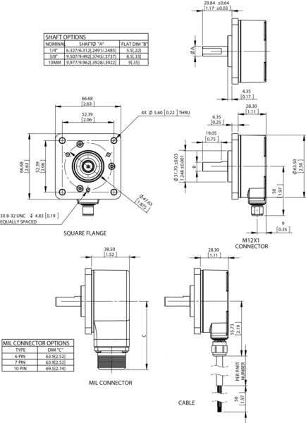 Механическое исполнениеСплошной вал, Квадратный фланец