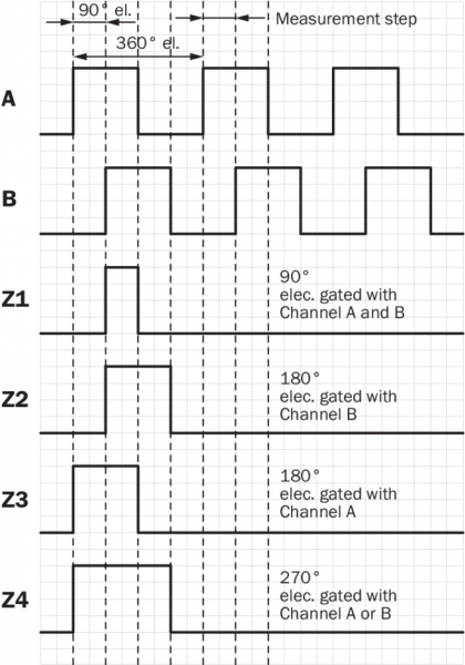 | Базовый сигнал, положение | 90°, электрические, логические соединения с A и B |