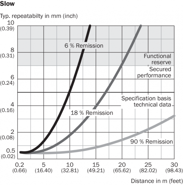 | Диапазон измерения | 200 mm ... 30.000 mm, 90 % отражения 1) 2) 200 mm ... 17.000 mm, 18 % отражения 200 mm ... 10.000 mm, 6 % отражения |