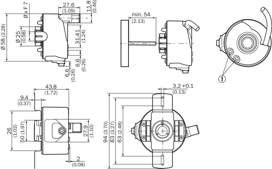 Габаритный чертеж Сквозной полый вал, зажим спереди Схема контактов Вид приборного штекера M12 на энкодере Вид: Галерея Список Показать всё Скрыть всё