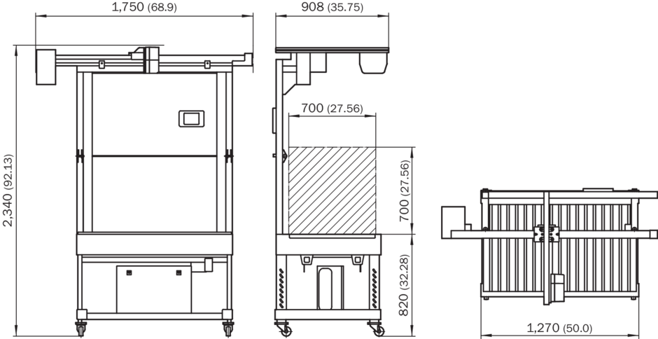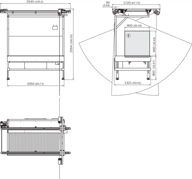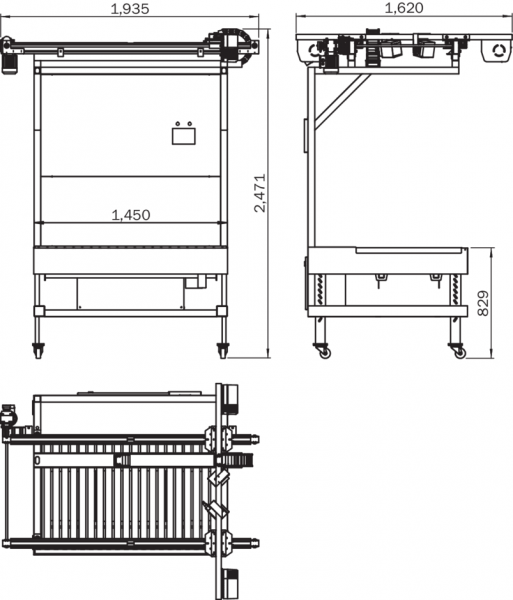 Д = 2000 мм x Ш = 900 мм, высота стола регулируется в пределах от 700 до 950 мм с шагом 50 мм