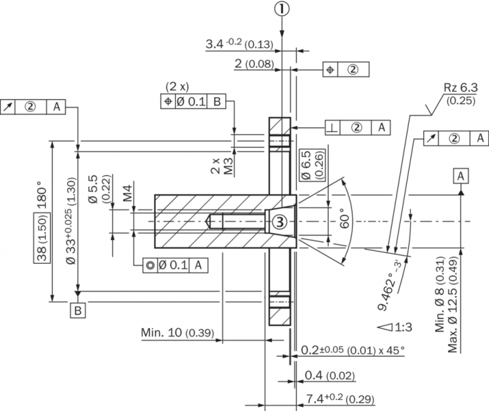 | Кривая кода | С возрастанием, при вращении вала. По часовой стрелке, если смотреть в направлении A (см. размерный чертеж). |