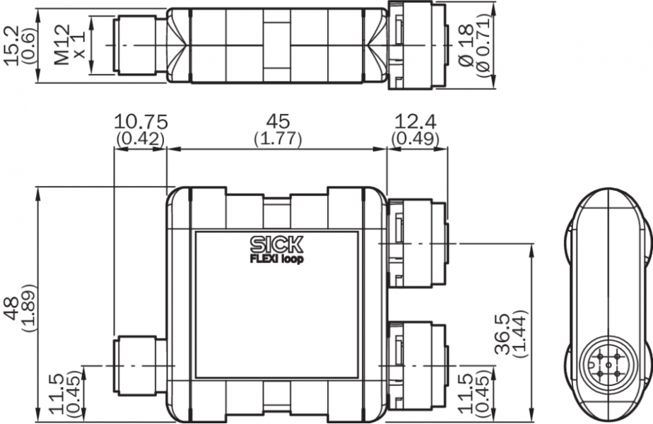 Тип подключения | Подключение контроллера безопасности | Розетка M12, 5-конт. | Вход Flexi Loop | Разъем M12, 5-конт. | Выход Flexi Loop | Розетка M12, 5-конт. |