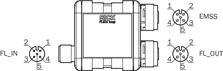 Применение подключений | Подключение контроллера безопасности | Для двухканального эквивалентного электромеханического аварийного выключателя (EMSS) | Вход Flexi Loop | Для соединения с предшествующим узлом Flexi Loop или для подключения линии Flexi Loop к контроллеру безопасности Flexi Soft. | Выход Flexi Loop | Для соединения с последующим модулем Flexi Loop или для завершения линии Flexi Loop терминатором Flexi Loop |