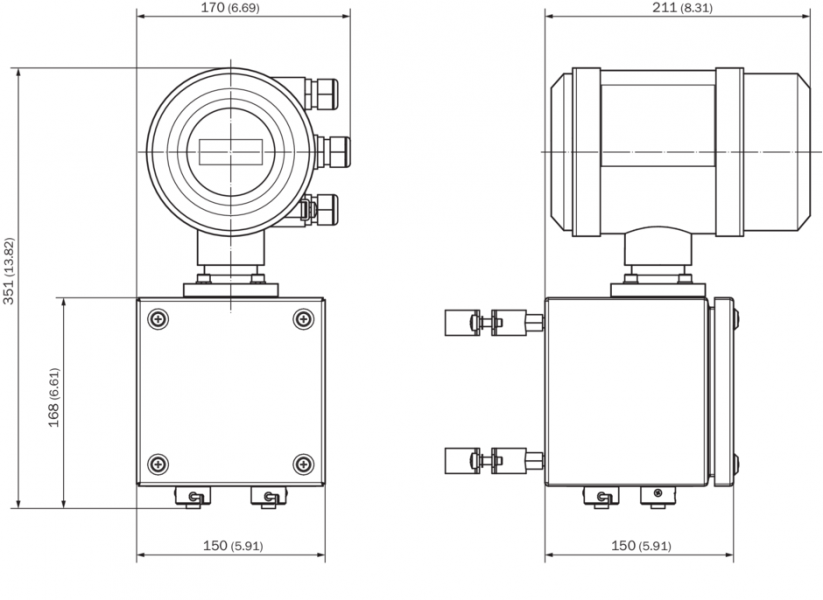 - Подходит для установки в шахтах благодаря удаленному размещению электронных компонентов и защите класса IP68