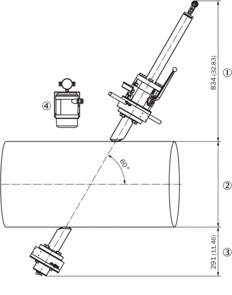 | Монтаж | Соединительный штуцер 1,5″ CI.600 по ANSI B16.5 для приварки к трубопроводу Длина кабеля для датчика: 5 или 15 м Монтаж устройства управления SPU на трубу 2" или на стену |